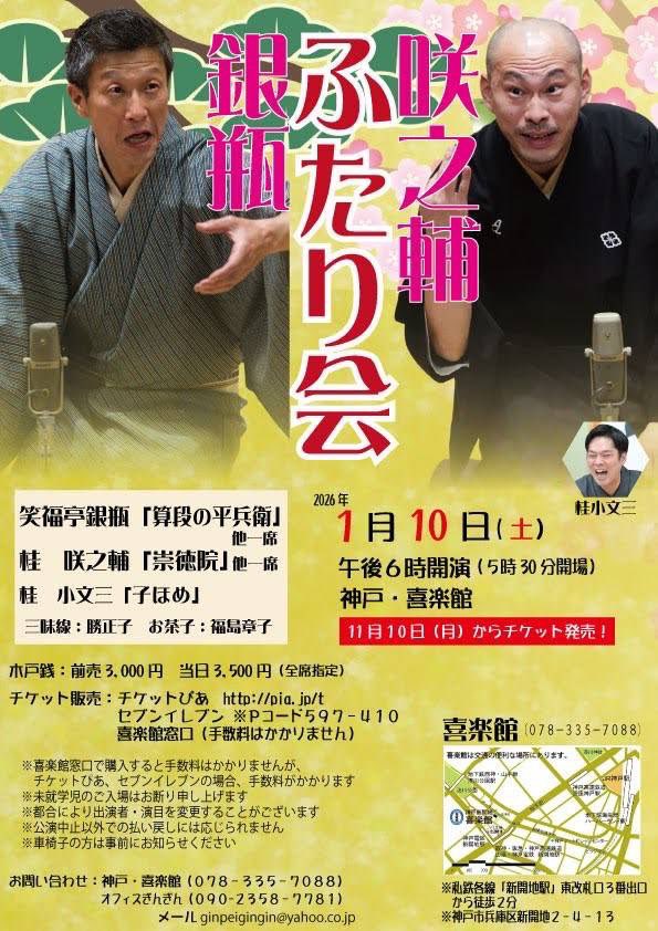 ※喜楽館窓口で購入すると手数料はかかりませんが、チケットびあ、セブンイレブンの場合、手数料がかかります